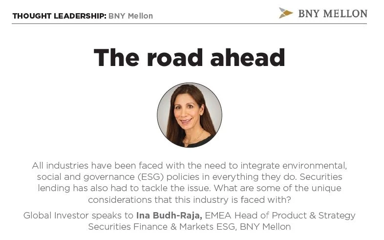 All industries have been faced with the need to integrate ESG policies in everything they do. Securities lending has also had to tackle the issue. What are some of the unique considerations that this industry is faced with? Global Investor speaks to Ina Budh-Raja, EMEA Head of Product & Strategy Securities Finance & Markets ESG, BNY Mellon