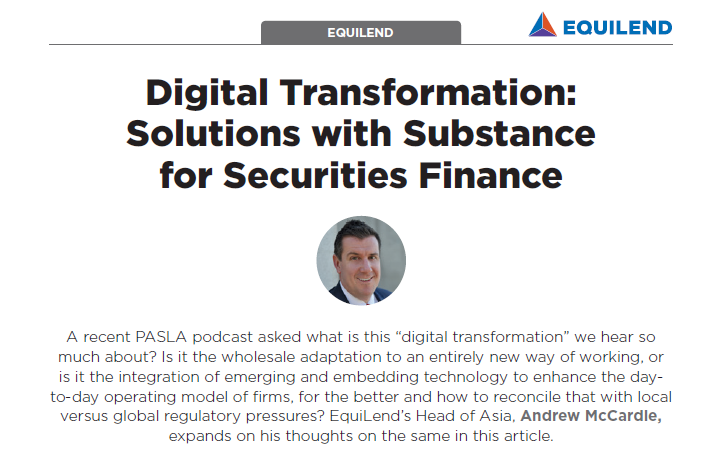 Global Investor interviewed Andrew McCardle, Equilend's Head of Asia on digital transformation.