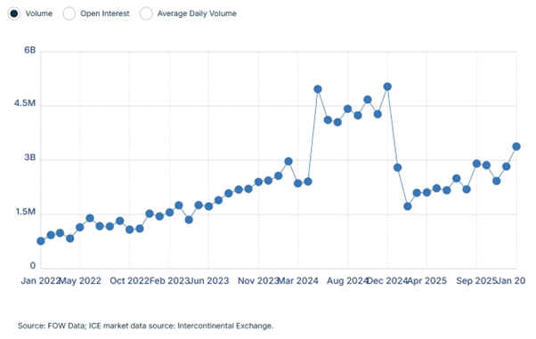 According to FOW data, Nifty 50 options volume on NSE saw 3.37 billion contracts in January 2026.